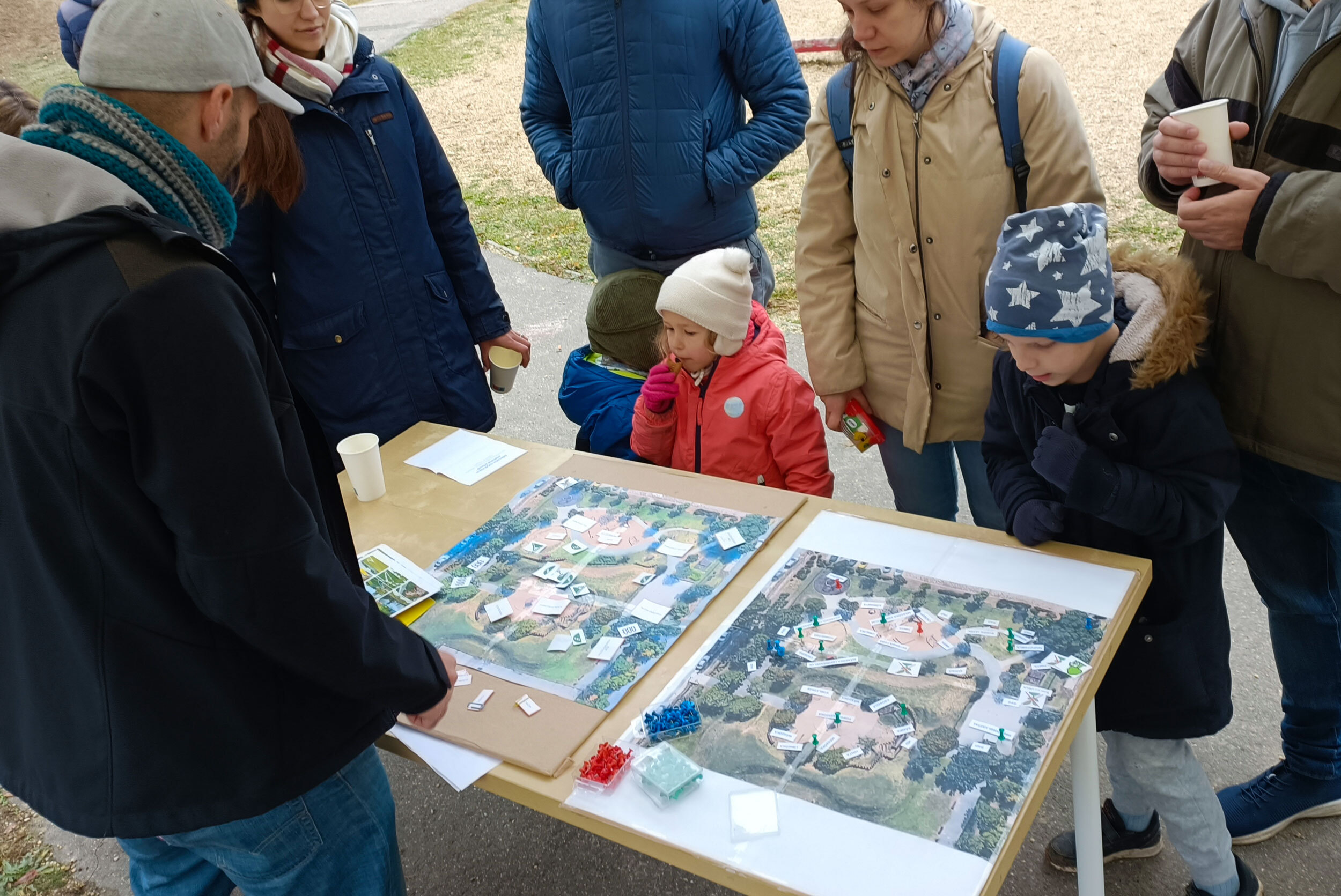 A jelenlevők a játszótér műholdképén megjelölhették kedvenc, illetve gyermekeik kedvenc helyeit. A jelölésekből is jól látszik, hogy a játszótér közkedvelt a helyiek kötött, mert a tér legtöbb pontját lefedte. Volt olyan család, ahol a pici gyerekek a nagyobbaknak dedikált részt szeretik leginkább, mások a kis homokozót, megint mások a csúszda környékét és az azt körülvevő egyensúlyozós farönköket.