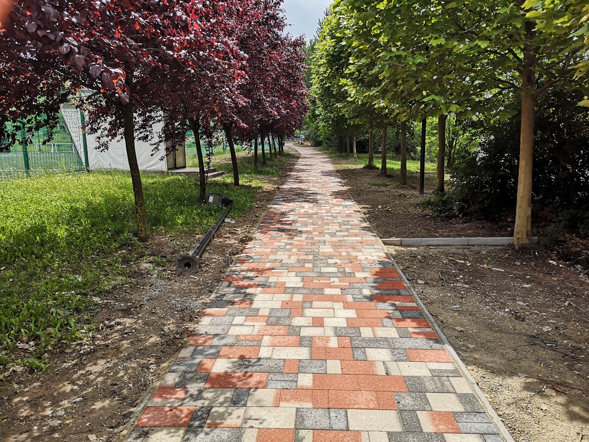 - A sétány mentén közvilágítás van, ennek vezetéke, illetve egy esetleges későbbi fejlesztés (pl. távközlési kábel) vezetékei közműcsatornában futnak. Ezáltal a későbbi beavatkozásnak nem kell jelentős bontással járnia.