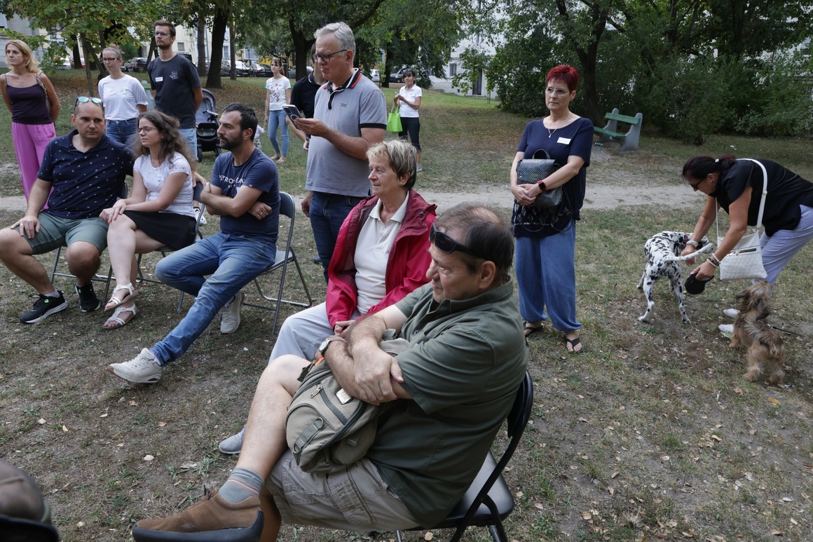 A 2023. szeptember 22-én tartottuk a Csikász – Csermák – Egyetem utcák által határolt belső park közösségi tervezésének első alkalmát. A délután 5 órától a parkban megrendezett találkozóra szép számmal jöttek el a környékbeliek közül, és a kellemes őszi napsütésben igazán jó hangulatú tervezésnek nézhettünk elébe.