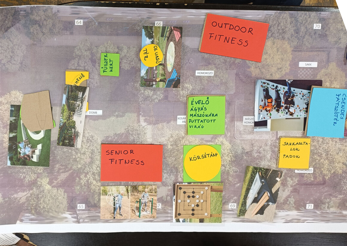 Felmerültek olyan kérdések, mint a közvilágítás szükséges javítása, egyes helyekre az árnyékolók beépítésének lehetősége, de felmerült az is, hogy jó lenne egy hinta a területre, régi fotókkal lehetne bemutatni a lakótelep múltját, vagy épp a retró nyomós ivókút lehetősége, ami szintén multidézőként működhetne.